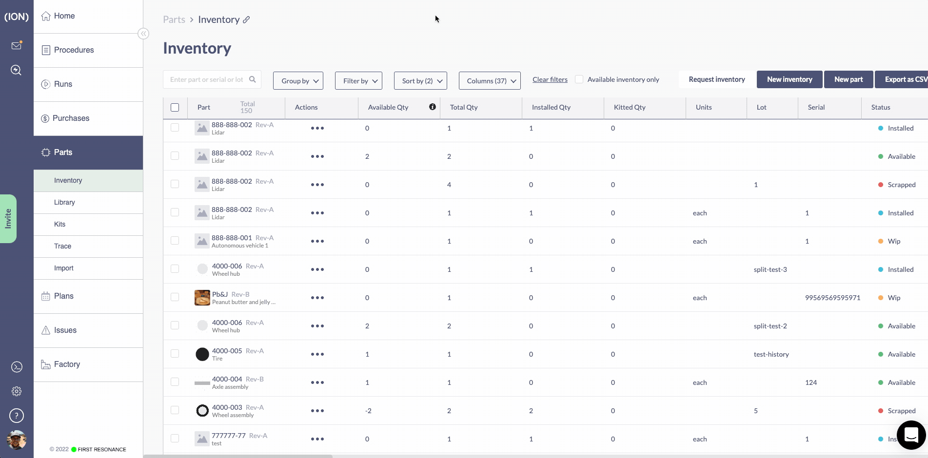 ION will automatically split inventory when partially installing, kitting, or scrapping a quantity. This occurs to keep the location/status of inventory items correct. For instance, if you have an inventory for quantity 2 and you kit 1 item, the inventory will split. Now the item that has been kitted will properly show a "Kitted" status and its location can be updated from the original.