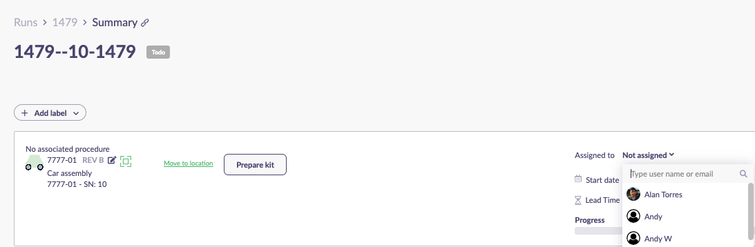 You can also assign runsteps to different people than who the run is assigned to in order to more effectively manage your factory.