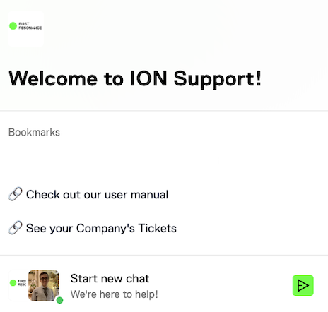* On the ION page, click the messenger in the bottom right, and select “Start New Chat”: